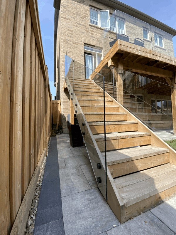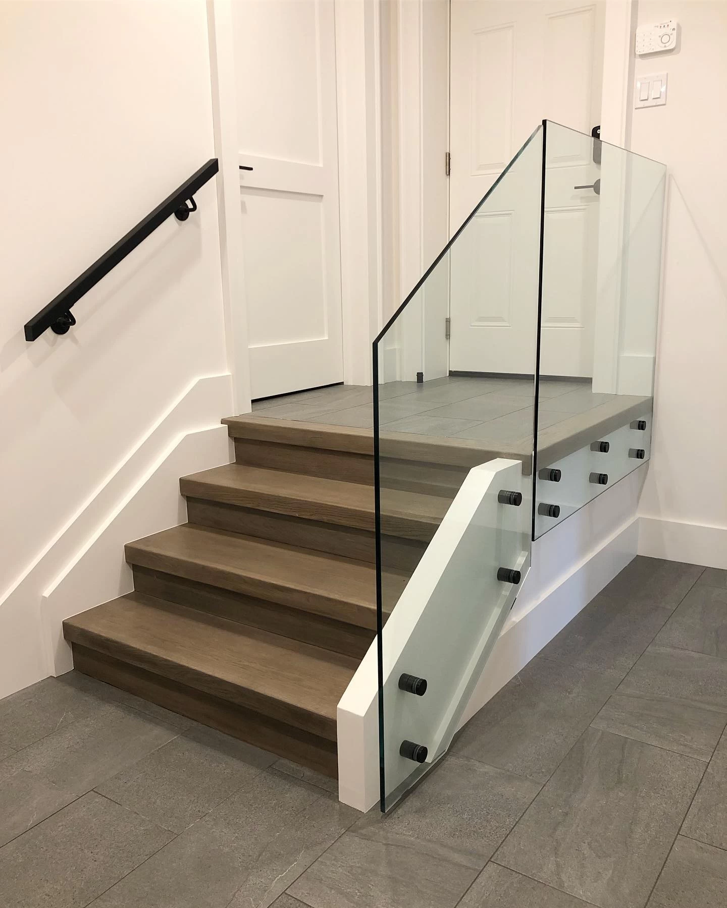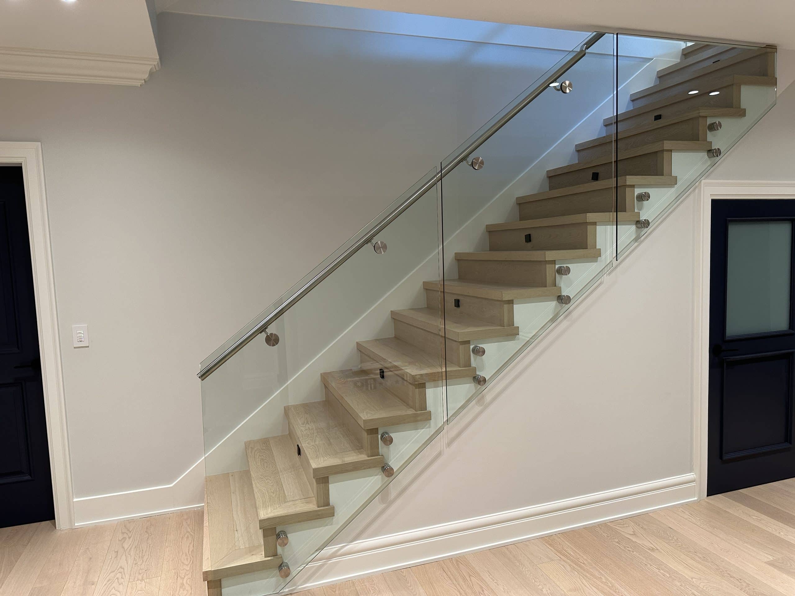 Standoffs are secured to stair risers or wall fascia with 4 – 6′ bolts