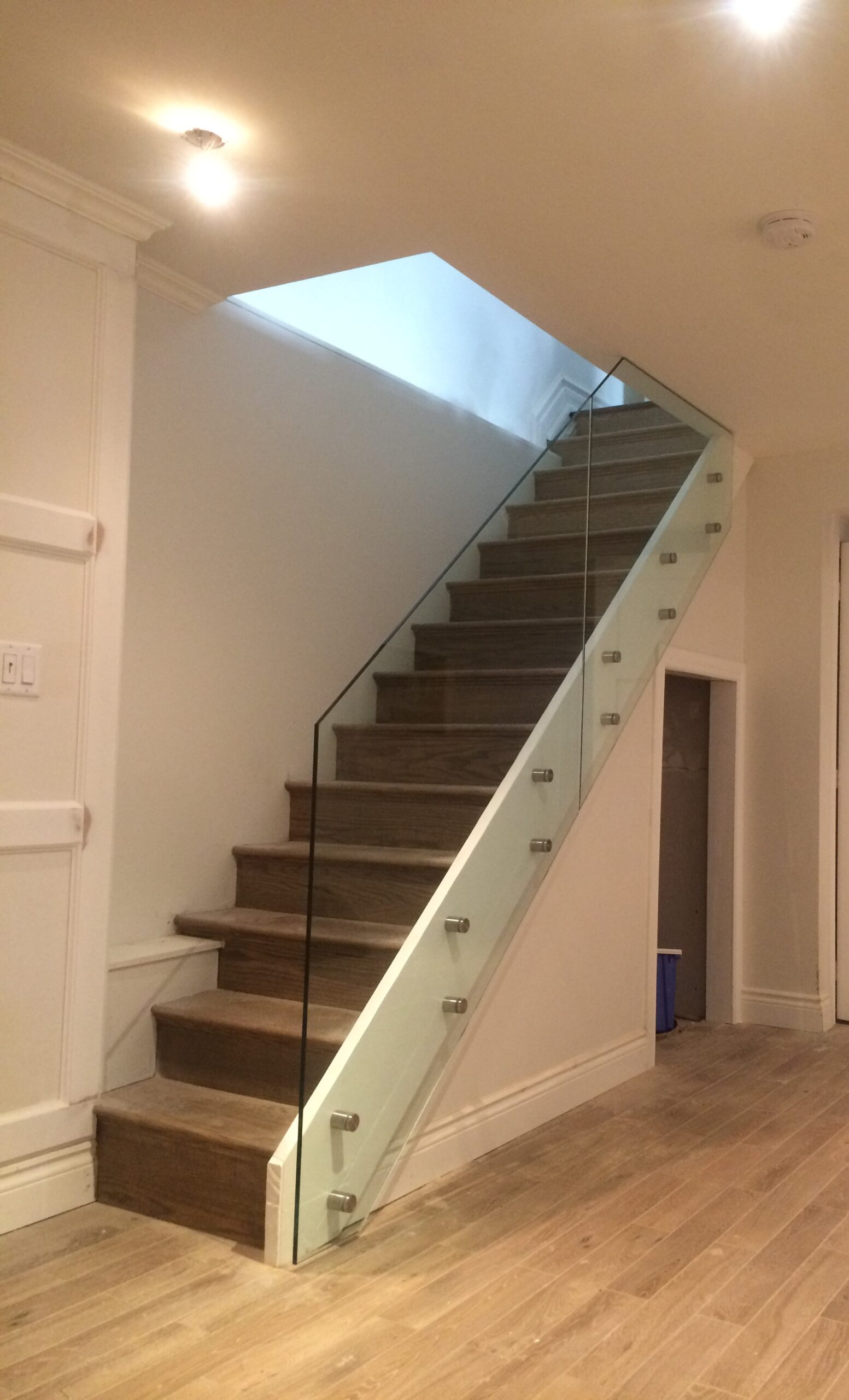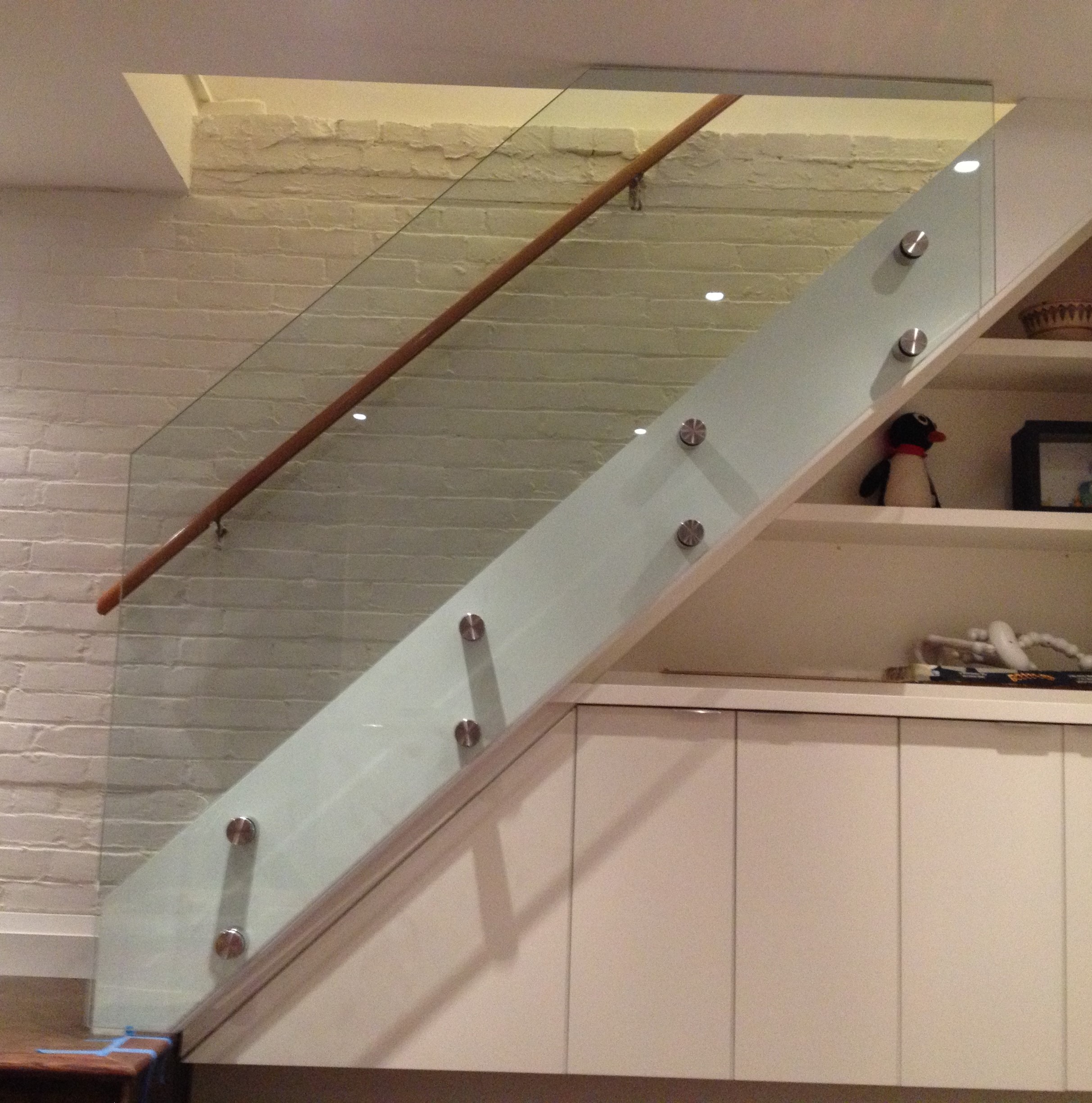 Stainless standoffs are elegant as glass appears to be floating with minimal metal support.