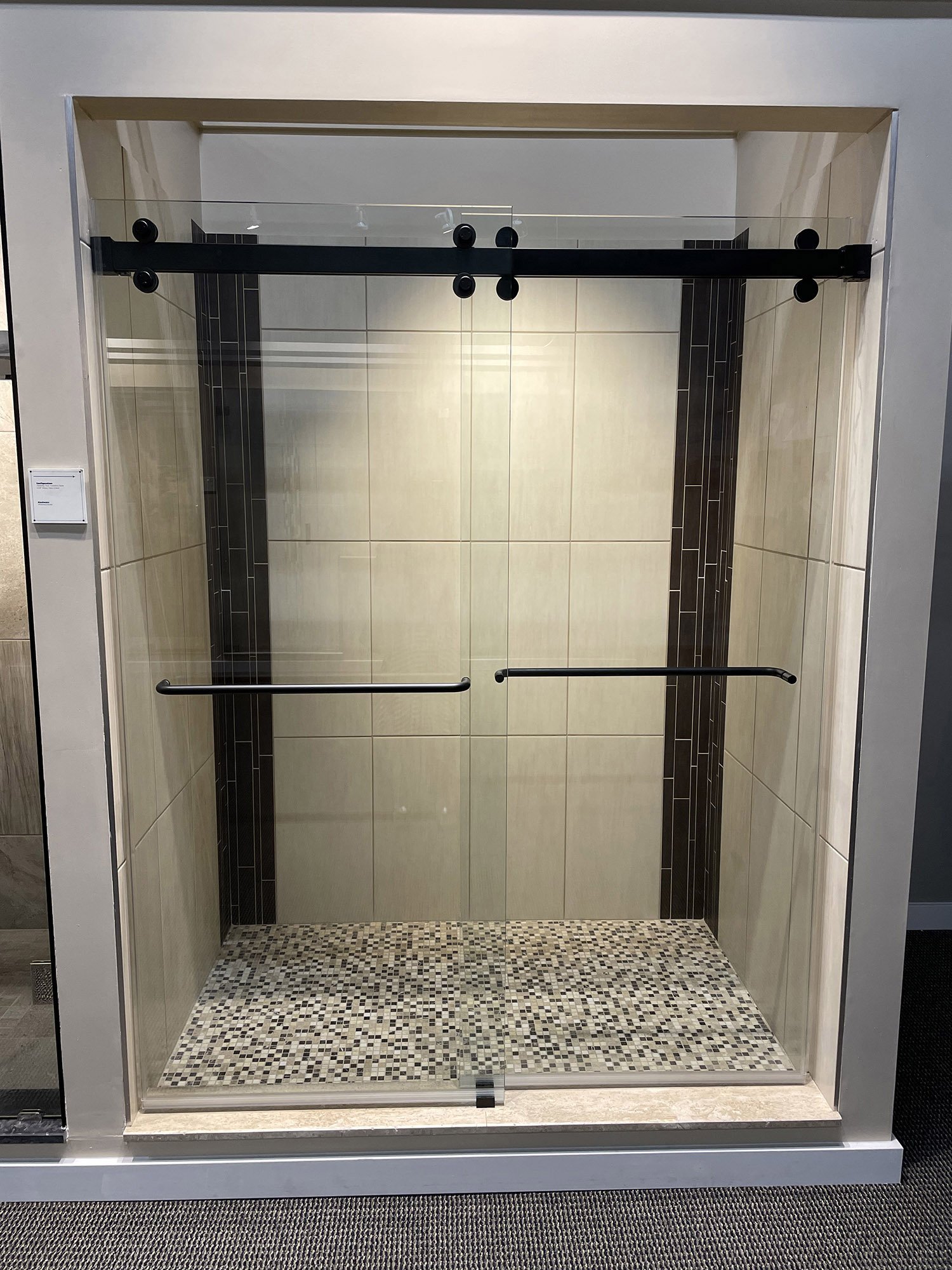 Frameless Serenity Sliding doors with End Panel NOW AVAILABLE IN MATTE BLACK!!! The …